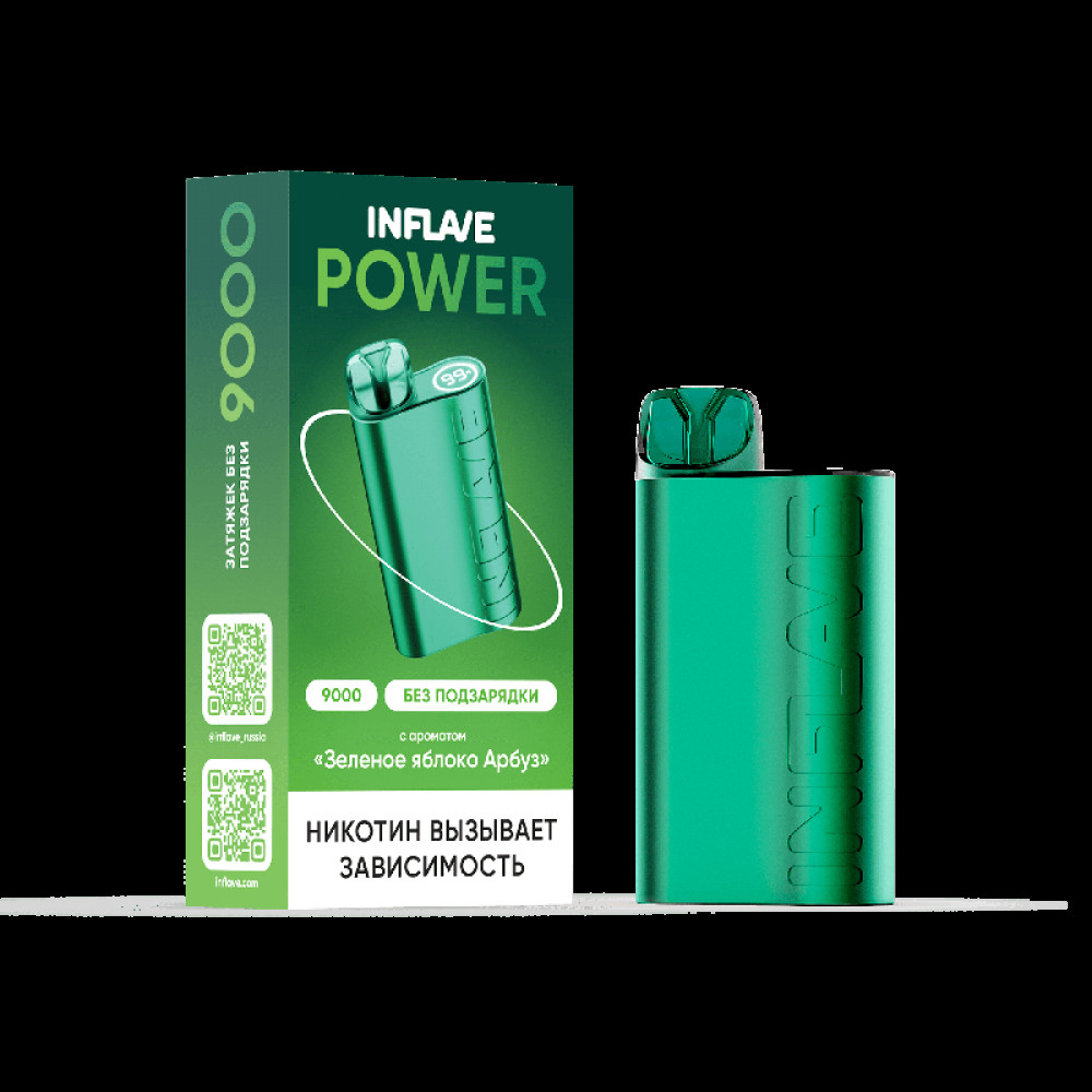 Электронная сигарета INFLAVE POWER 9000 затяжек Зеленое Яблоко Арбуз.